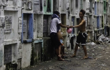 Navotas to miasto w obrębie Metro Manila. Znajdują się tu (nie)sławne slumsy zlokalizowane na cmentarzu. Mieszkający w nich ludzie nie znaleźli lepszego miejsca do życia w szybko rozrastającej się stolicy Filipin. Widząc gościa lokatorzy czują zakłopotanie, ale są też zaskakująco życzliwi. Garstka dzieci nie odstępowała mnie na krok, chętnie pozując do zdjęć. Pomimo że czułem na sobie spojrzenia, nie wydaje mi się by Navotas było dużo bardziej niebezpieczne od reszty Manili. Mieszkają tu ludzie biedni, ale religijni. Wielu mężczyzn w Navotas to rykszarze. Kobiety najczęściej zajmują się segregacją śmieci. Smród jest tu ciężki do zniesienia. W wielu miejscach przechodzi się przez kałuże odchodów, a dookoła latają stada much. Slumsy Navotas są straszne, ale ci ludzie w przeciwieństwie do tysięcy bezdomnych w Manili mają własny dach nad głową. Choć jest to tylko zimny grób.