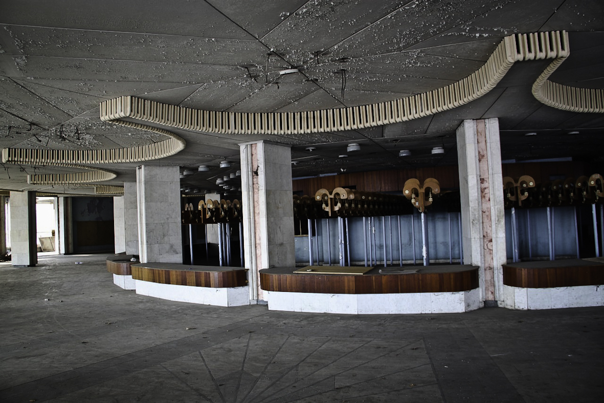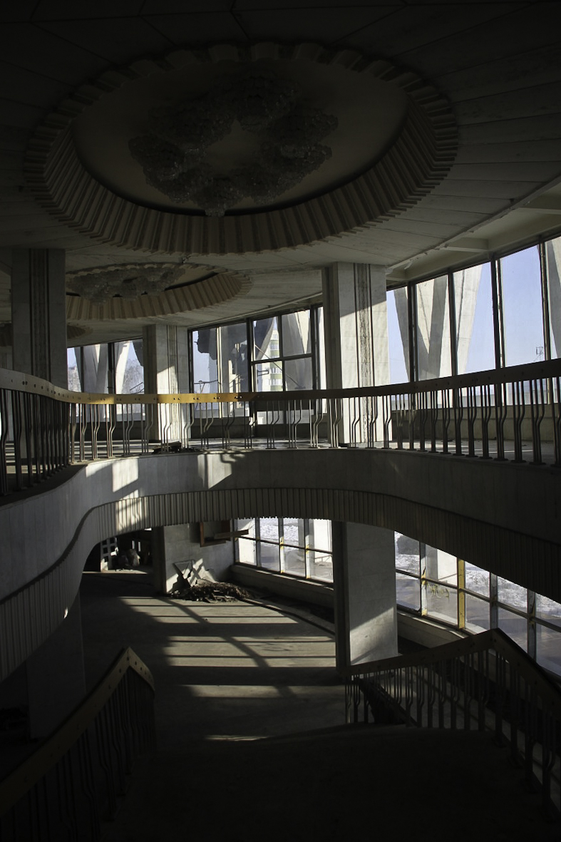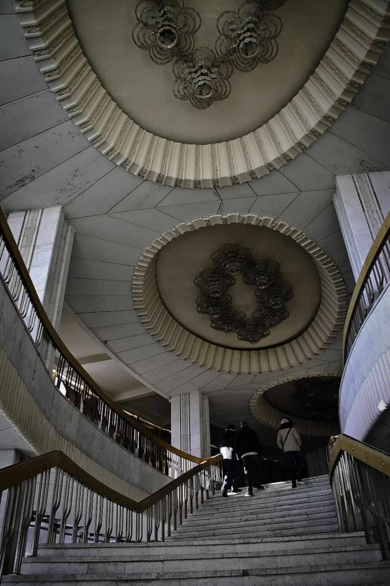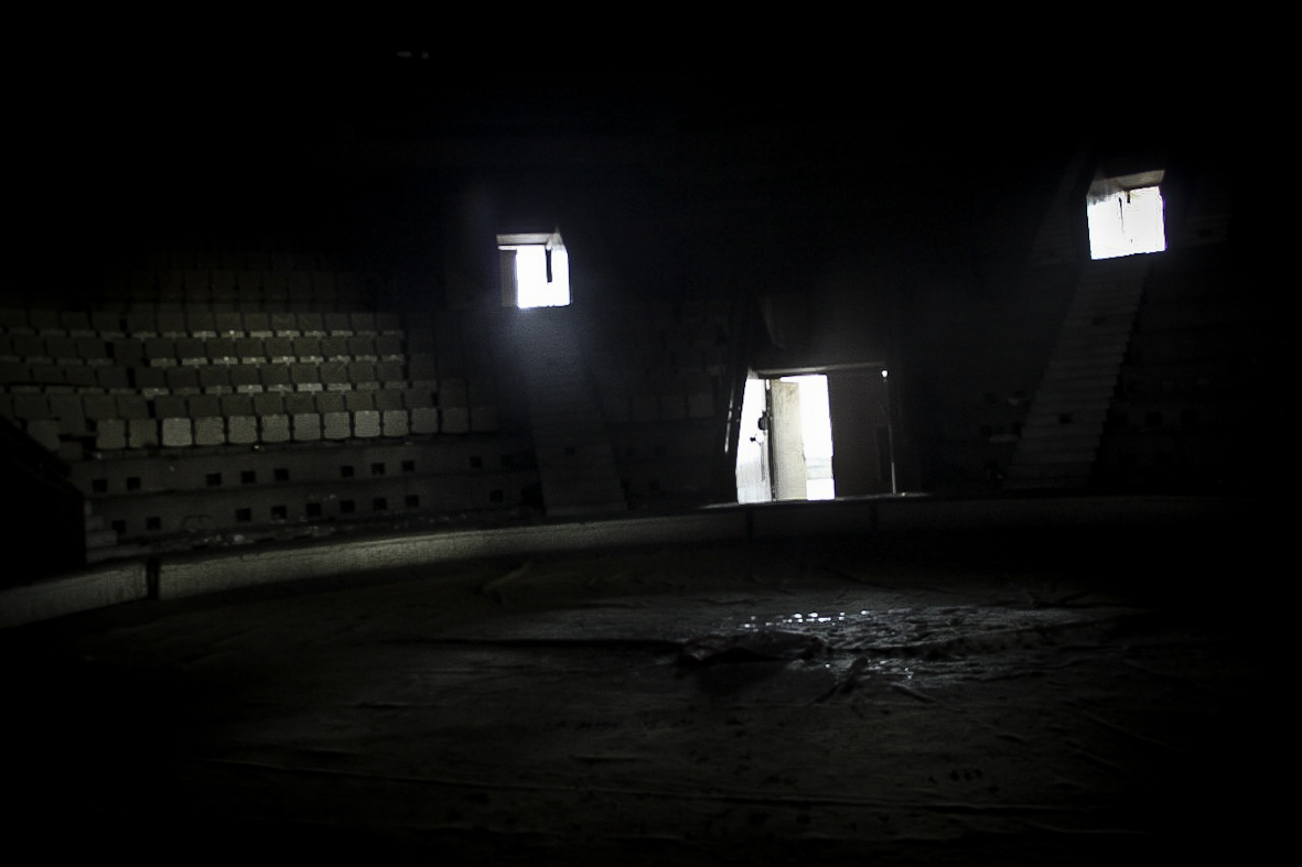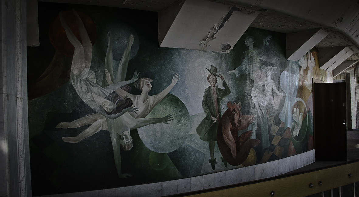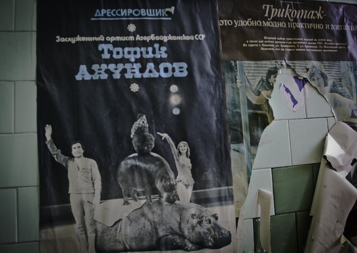 Dmitri nie był w środku od lat dzieciństwa. Nie byliśmy pewni czy uda nam się dostać do środka. Szczęśliwie jedna deska okazała się pozbawiona gwoździ. Otoczył nas ten niesamowity klimat, jaki może towarzyszyć tylko spektakularnym opuszczonym miejscom. Bogate żyrandole, choć częściowo porozbijane, świadczą o minionej świetności tego miejsca. Podarte plakaty przypominają epokę, której już nie ma. Puste przestrzenie wydają się aż prosić o zapełnienie. Ściany wciąż odbijają echa tłumów z przeszłości. To miejsce płacze, bo co to za cyrk pozbawiony publiki?