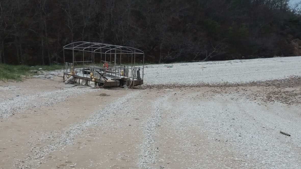 Na wyspie poza tablicą informacyjną można znaleźć fundamenty baraków, w których mieszkali komandosi. Nie ma tu więcej śladów po tragedii, do której tu doszło prawie pół wieku temu. Liny, styropianowe pudła, czerwone wstążki na drzewach to pozostałości po ekipie filmowej i rybackie odpady. Wyspa w dużej mierze zarosła przysłaniając aktywność człowieka. Szukałem uporczywie jakichś łusek, ciekawszych pozostałości, ale nic z tego. Spotkałem za to parę bażantów i stadko saren. Ostatecznie było warto!