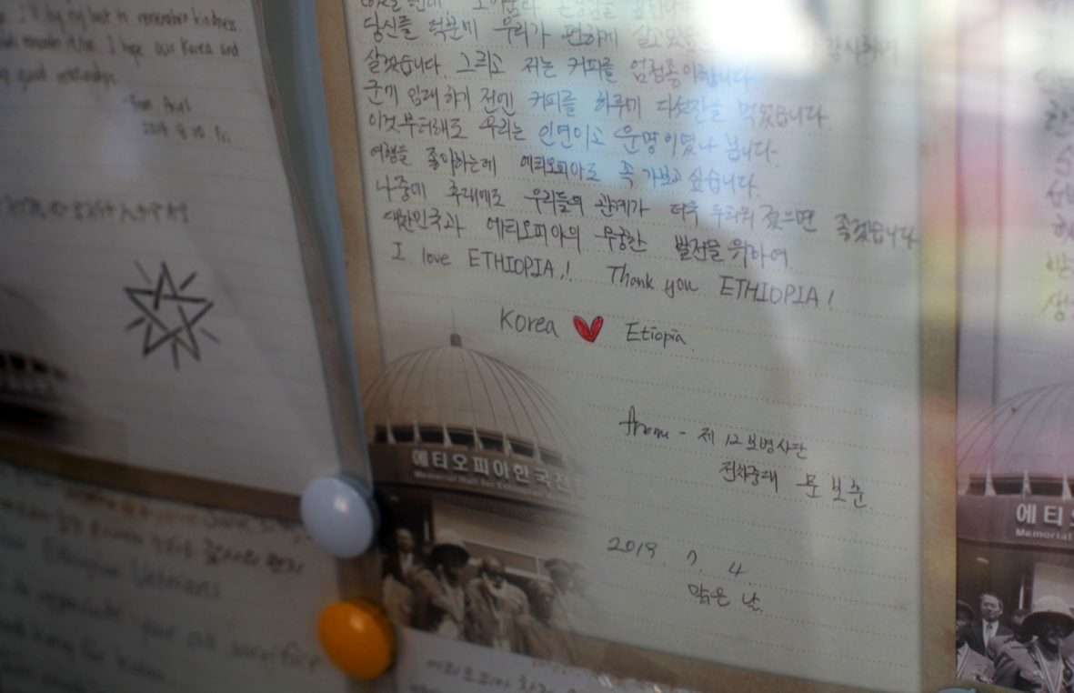 Etiopia była jednym z 21 krajów ONZ, które udzieliły zbrojnego wsparcia Korei Południowej podczas koreańskiej wojny 1950-53. Po wojnie to Etiopia (podobnie jak Somalia!) wysyłała pomoc humanitarną do Korei Południowej. Najlepszym miejscem, by choć trochę poznać tę mniej znaną historię wojny koreańskiej, jest wizyta Domu Pamięci Etiopskich Weteranów (ang. The Memorial Hall for Ethiopian Veterans in the Korean War; kor. 에티오피아 한국전 참전), który znajdujący się w Chuncheon, w pobliżu Seulu. By uczynić naszą wizytę jeszcze ciekawszą, udaliśmy się tam w dzień święta Meskel (etiopskie obchody Podwyższenia Krzyża Świętego, zawierające szereg lokalnych tradycji i wierzeń), w kalendarzu gregoriańskim obchodzonym 27 lub 28 września. Miejsce jest równocześnie centrum kultury etiopskiej.