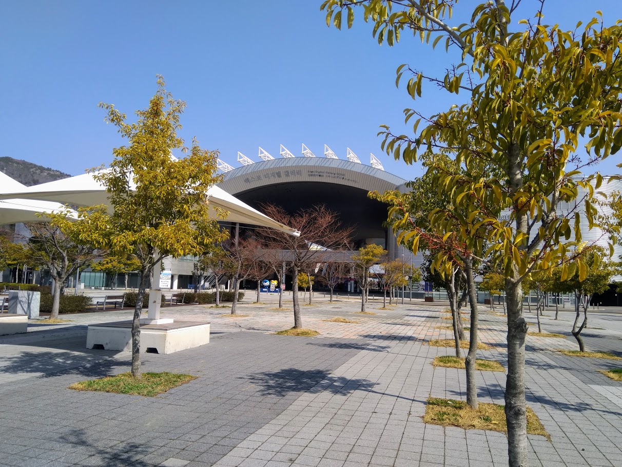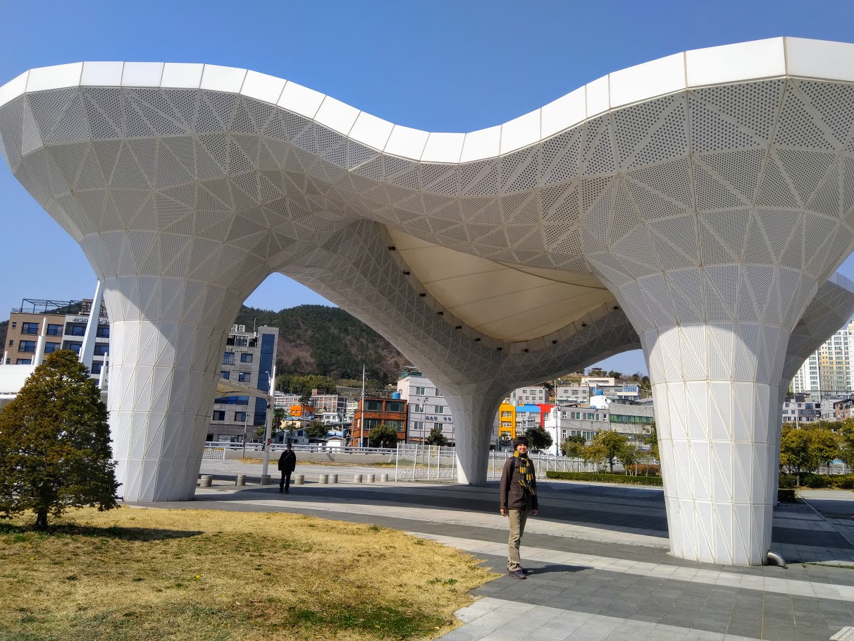 Odongdo znajduje się w Yeosu (Jolla Południowa). Z ciekawostek na temat samego miasto, w 2012 roku odbyło się w nim EXPO. Po wyjściu z dworca kolejowego wciąż można podziwiać zbudowany specjalnie z tej okazji pawilon i kilka dodatkowych budynków. Słynny generał Yi Sun-sin (postrach Japończyków i twórca „pancernych” okrętów) wybrał Yeosu na siedzibę swojej floty. Naszym głównym celem była wyspa kamelii, ale przeszliśmy się również na mały spacer po mieście. Nabrzeże, port, punkt widokowy, fontanny i niewielka starówka z pomnikiem nieustraszonego admirała Yi, w połączeniu z Odongdo, pozwalają w Yeosu spędzić cały, aktywny dzień. Na wyspę alternatywnie można dostać się turystycznym autobusem dongbaeg-yeolcha (동백열차), czyli dosłownie „kameliową kolejką”.