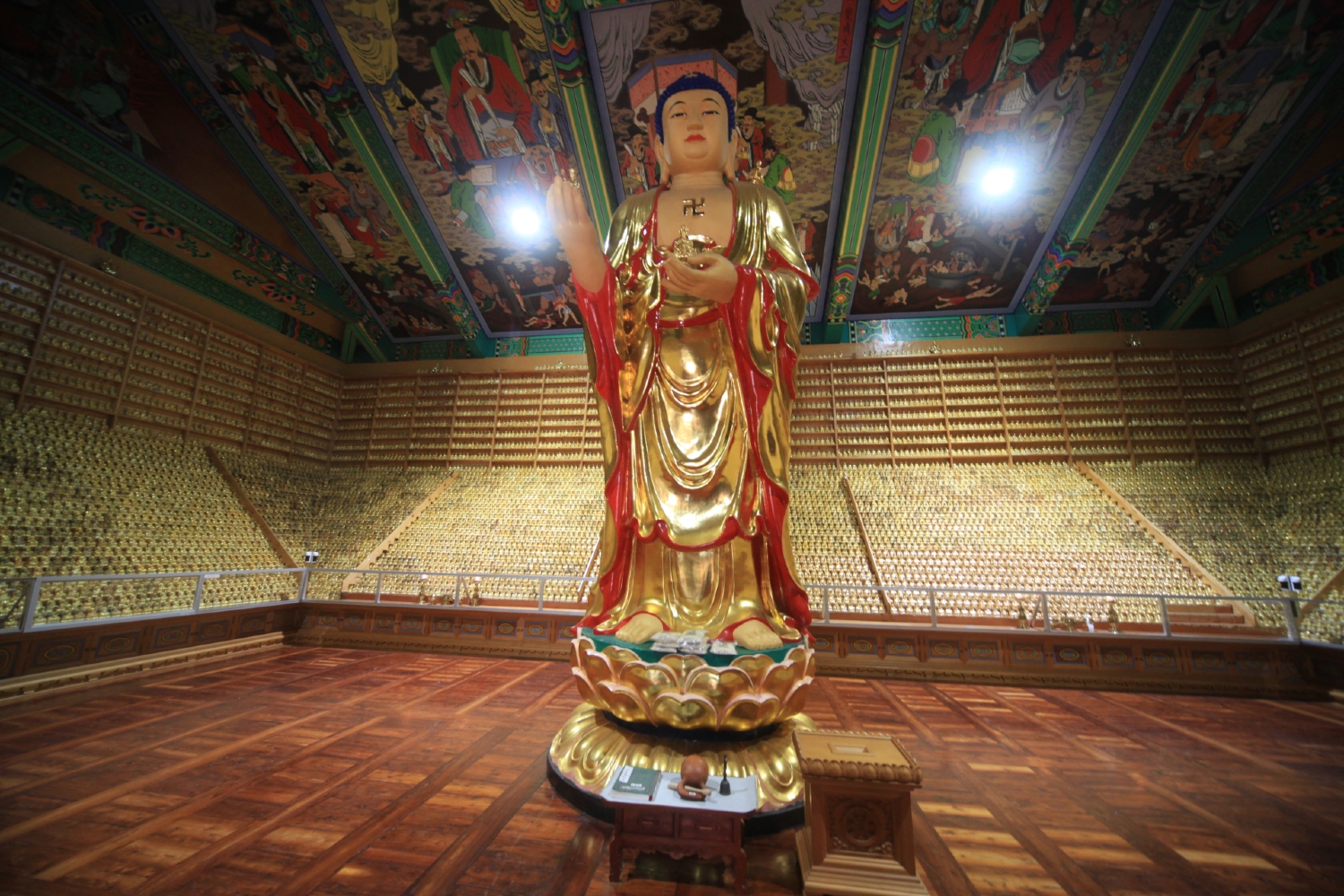 Nammireuksa (남미륵사) jest ze wszystkich koreańskich świątyń najbardziej zaskakująca. Położona na kompletnym pustkowiu, pośród wzgórz Południowej Jeolla, widoczna jest już z daleka. Szczególnie wyróżnia się górujący nad świątynią gigantyczny posąg Buddy. To 36-metrowy Amitabha (아미타불). Wykonany z ciemnego brązu, sprawia wrażenie, jakby był czarnego koloru. To największy siedzący Budda w Korei. Nie sugerujcie się Wikipedią, która błędnie wskazuje Sinheungsa jako posiadającą największy posąg. Co jednak najlepsze, w Nammireuksa Wielki Budda jest tylko jedną z wielu atrakcji.